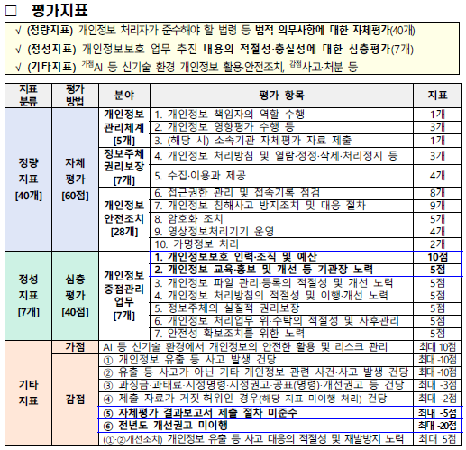 2025년 개인정보 보호수준 평가지표 / 출처 : 개인정보위