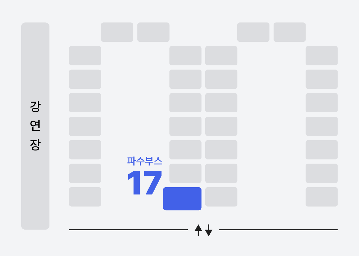 파수 부스는 17번으로, 지하 2층 컨벤션홀 출입문 바로 앞에 위치합니다.