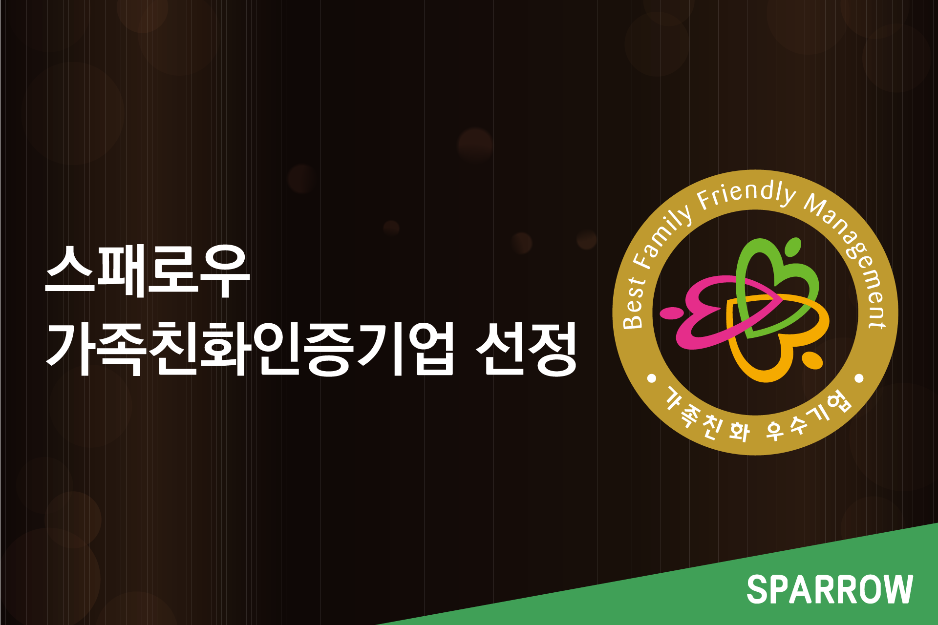 일하기 좋은 강소기업 스패로우, 가족친화인증기업 선정 스패로우가 성평등가족부가 주관하는 ‘가족친화인증기업’에 선정됐습니다. 가족친화인증제도는 자녀출산 및 양육지원, 유연근무제 등 근로자가 일과 가정의 균형을 이룰 수 있도록 가족친화제도를 모범적으로 운영하는 기업 및 공공기관에 2025.12.15